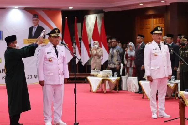 Pelantikan yang digelar dengan jumlah undangan terbatas itu hanya dihadiri unsur Forkopimda di dua kabupaten/kota dan keluarga pejabat yang dilantik.