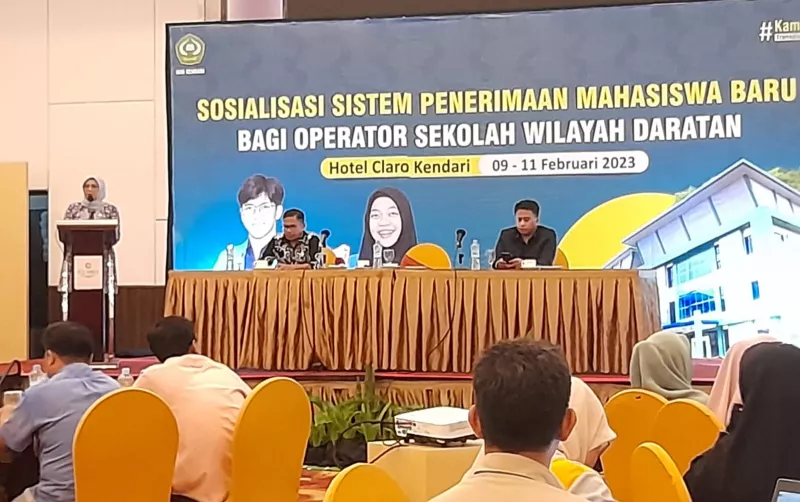 KENDARIAKTUAL.COM, KENDARI – Institut Agama Islam Negeri (IAIN) Kendari melakukan sosialisasi sistem penerimaan Mahasiswa Baru (Maba) tahun 2023 kepada operator sekolah untuk wilayah daratan, kegiatan yang dilaksanakan di salah satu hotel di Kendari dan berlangsung pada 9 – 11 Februari 2023.