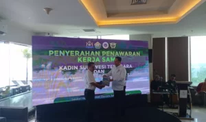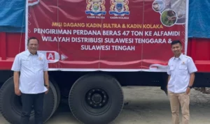 ” Tapi Alhamdulillah dengan adanya dukungan dari Kadin, kami membangun mitra untuk meningkatkan investasi daerah melalui pengiriman hasil bumi di Sultra,” ucapnya.
