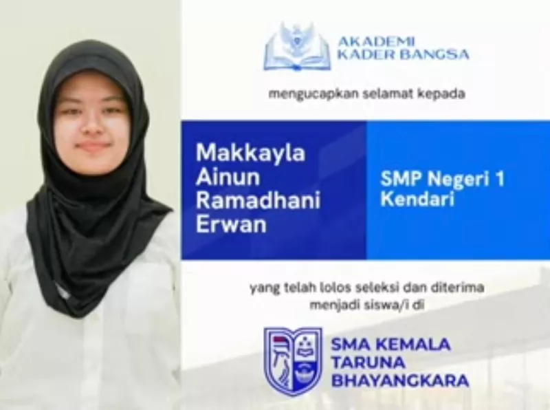 Diketahui, proses seleksi masuk sekolah tersebut cukup ketat dan kompetitif, karena peminatnya berasal dari berbagai daerah di Indonesia. Namun, Makkayla berhasil membuktikan diri sebagai salah satu siswa terbaik dari Sultra yang lolos seleksi tahun ini.