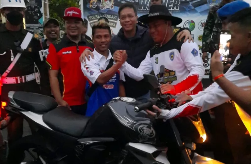 Dengan hasil ini pula pembalap andalan Sulawesi Tenggara ini berhak membawa pulang hadiah utama sebuah sepeda motor.