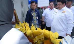 KENDARIAKTUAL.COM, KENDARI – Memperingati Hari Pangan Sedunia (HPS) Pemprov Sulawesi Tenggara (Sultra) dan Pemkot Kendari bersama Bank Indonesia dan Bulog menggelar Gerakan Pasar Murah di Halaman GOR Apriyani Rahayu Kendari. Senin (16/10/2023)