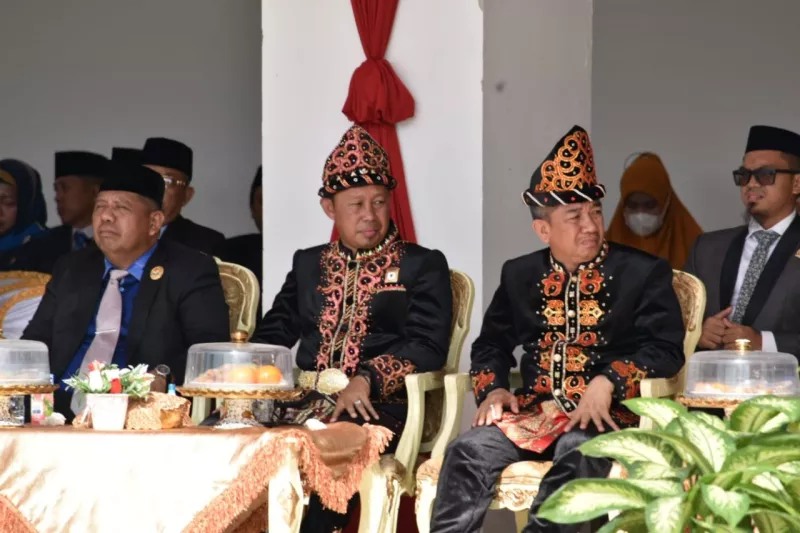 Pj. Wali Kota Kendari sebagai Inspektur upacara mengenakan pakaian adat Suku Tolaki. Pakain adat nusantara juga digunakan pimpinan organisasi perangkat daerah (OPD) peserta upacara.