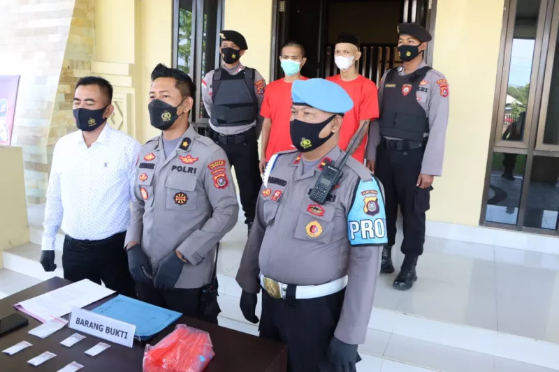 Atas tindakan kefua tersangka ini tuturnya, keduanya melanggar asal 114 ayat (2) subsider pasal 112 ayat (2) lebih subsider pasal 132 (1) UU RI No. 35 tahun 2009 tentang Narkotika. Denhan ancaman hukuman paling singkat 6 tahun penjara paling lama seumur hidup.
