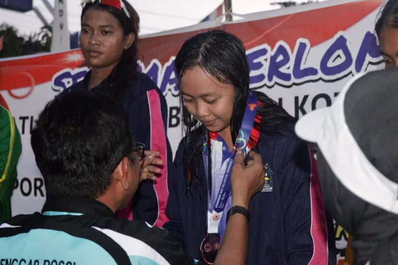 KENDARIAKTUALAKTUAL.COM, BAUBAU – Gevira Raudatul siswi SMA Negeri 4 Kendari berhasil raih 5 medali perunggu dari cabang olahraga (cabor) selam di Pekan Olahraga Provinsi (Porprov) ke XIV tahun 2022 yang di selenggarakan di Kota Baubau dan Buton.