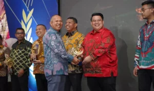 Penyerahan penghargaan dilakukan langsung Gubernur Sultra Ali Mazi dalam Rapat Koordinasi dan Penguatan sinergi antar lembaga dan kemitraan dalam penanggulangan bencana tahun 2021 yang berlangsung di salah satu hotel di Kendari, Selasa (2/11/2021).